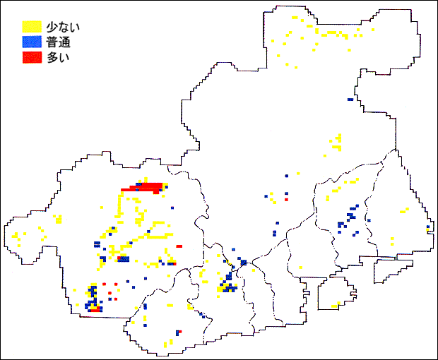 水生昆虫の中でも普通に見られる種です。生息環境として池や川、水田が必要であるため、池や水田が多い北区、西区、垂水区からの報告がたくさんありました。旧市内からの報告のうち現在の環境条件からみると分布が疑しいところもあります。