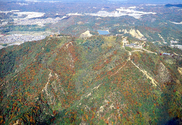 昔は、マツが、うっそうと茂るうす暗い森だったそうですが、妙法寺の西側から高取山頂上にかけて何回かの山火事で、マツがほとんど焼け、頂上付近は、地層を見せる山になってしまったそうです。その後、付近の住民が協力し合ってサクラやナラなどを植樹していき、今のように緑を回復することができたそうです。高取神社へは、五位の池、丸山、明泉寺、須磨などこの山に接するあらゆる所から容易に行くことができます。六甲縦走コースの休けい地点にもあたり、健康づくり、体力づくりの一環として早朝登山をする人々が数多く見られます。登山や神社への参拝だけでなく、付近の学校の運動クラブのジョギングなどにも利用され、一日中、人が途絶えることがありません。参道には、数軒の茶店や小さな広場がいくつかあり、市街地に近いこともあって市民に非常に親しまれる山になっているのです。