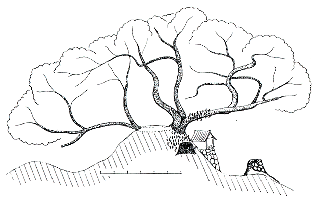 大きく曲がったウバメガシの古木 |
