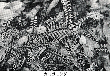 カミガモシダは、シシランを調べに出かけたとき、新しく見つけたものだが、神戸では初めての自生地である。カミガモシダは兵庫県では丹波地方に多く分布する。自生地はやはり古生層の岩上である。神戸でのカミガモシダの自生地は、土地とシダとの結びつきを明白に立証してくれるものであった。