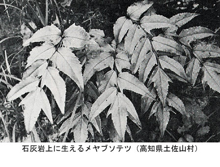 兵庫県下には分布していないが、石灰岩地帯には普通このコンクリート上に育つヤブソテツと同じヤブソテツ属のメヤブソテツが生育しており、メヤブソテツは好アルカリ性のシダの一つとして知られている。ヤブソテツも酸性の六甲花崗岩地と異なる石灰分の多いところを好むシダといってもよいであろう。