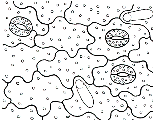 次に、根から吸収された水は植物体の裏面から勝手きままに蒸発していったのでは困る。勝手に蒸発しないような丈夫な膜または表皮(クチクラ層)をつくらなければならない。と同時に、吸収しすぎた水、余分な水は外部に出さなければならない。その調節の役割を果たすところが必要となる。それが、葉の裏面に多い気孔である。気孔では水分の蒸散の調節をしていく。