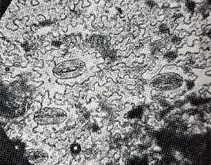 ところが、陸上に上がった植物は動物と違って自己の生命、種族の生命を維持するために必要な光や二酸化炭素をもとにして光合成を営んでいる。呼吸には酸素が使われる。それらの気体の出入りロとその調節をしているのがまた気孔である。