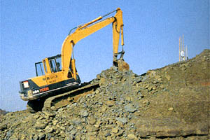 翌1月8日、いよいよ最終日である。ショベルカーは朝早くから待機している。前日の雨ですべりやすくなった斜面の道をもう一度作りなおして、いつでもおろせる体勢である。