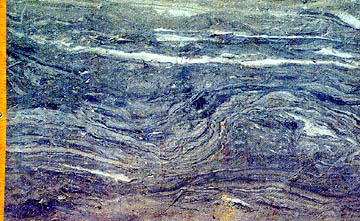 シルト層とは言っても正確には細粒の砂とシルトが交互に堆積し1cm〜数cmの互層になっているのは、水流の勢いが常に変化していたことを示している。しかも堆積物の中には全くレキがふくまれていなことから考えて、れはそんなに強い勢いを持つものではなかったと考えられる。