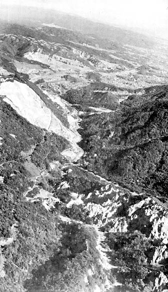 六甲断層帯の蓬莱峡上空から東方をのぞむ(昭53撮)