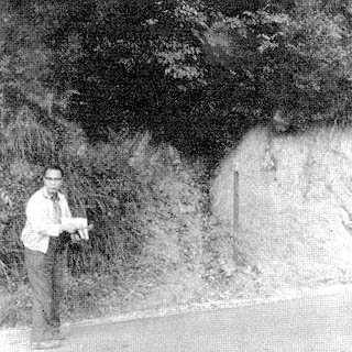 蓬莱峡から太多田川を通って東へ向う六甲断層は生瀬とウイルキンソンの工場との間に断層面が顔を出す(昭42撮). |
