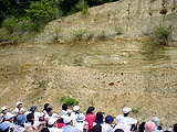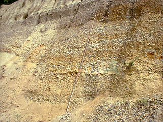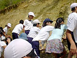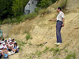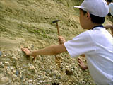 ここでは一人一人が、地層を直接さわり、掘り、割ってみるなどの作業をしながら観察することが大切である。