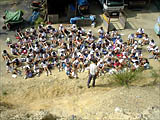 「もう一度、離れた場所から地層を見ながら、地層が何からできているか、どうつながっているか、どう変化しているかを絵に書いてみましょう。(レキ・砂・泥の模様も説明する)。また、今日の観察でわかったことを書きましょう。」