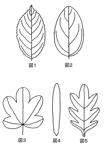 神戸層群の化石は、ほとんどが木の葉です。この章では、葉の形を手がかりにして化石の名前を調べていく手だてを工夫しました。