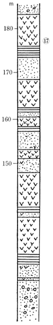 白川累層上部と藍那累層より産出し、葉身が大きいために曲がりくねった状態で産出することが多い。