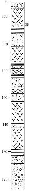 白川累層下部よりよく見つかるが、葉全体が2次的に曲がりくねってはいっている状態のものが多い。