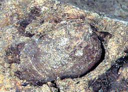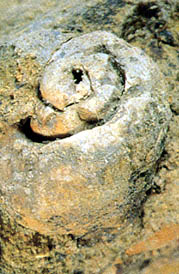 ▲海の巻き貝の化石