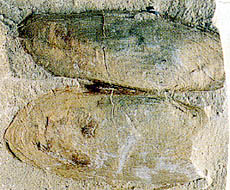 ▲海の二枚貝の化石