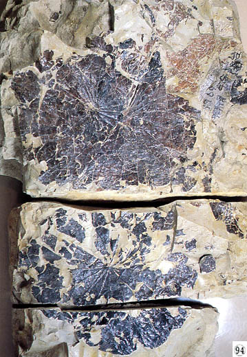 ハスといえば、流水の池や沼に生える水生植物で地下茎は泥の中をはい、それが太ってレンコンができます。葉は根から生え、長い葉柄がのびて葉を水面上に出しています。ハスはあまり深くない池や沼などによく生えていますから、この化石がとれたあたりもそんな所だったのでしょう。日本では、よく栽培されていますが、中国、インド、オーストラリアなどの暖帯から熱帯にわたって分布しています。