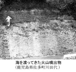 鬼界カルデラの噴火のとき、まず軽石が大量に噴出して、この火山と大隅半島との間の海上を埋め、浮き桟橋のようになった。そのあとに続いて噴出してきた高温の火砕流が、軽石の桟橋の上を流れ、ここまで達したのである。そして火山活動の終えんを告げる火山灰の噴出と降下があった。そのときの火山灰が玉津まで飛んできたのである。このように書いても実感として理解してもらえぬと思う。火山国である日本でも、カルデラを形成するような大規模な噴出活動は、有史以来起こっていない。われわれが歴史書で読んだり、聞いたりする浅間山や桜島の噴火は、このカルデラ形成の火山活動には比べようがないほど規模が小さいのである。