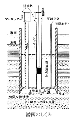 1.潜函(ケーソン)で海底下にもぐる