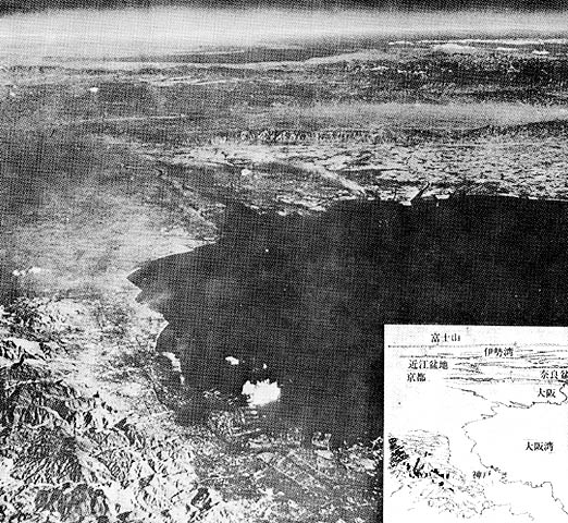 明石海峡上の8,000メートルの高空から大阪湾を撮影した。手前から六甲山,