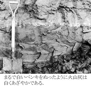 そのほか大阪港の地層には、その当時のできごとを示す二つの記録が残っていた。そのひとつは白色の薄い火山灰層で、その厚さは数センチである。その深度は30.8メートルで、年代はさきの木片の示した9,600年前である。この火山灰には紫蘇輝石、角セン石、普通輝石、磁鉄鉱などが含まれていて、火山ガラスの屈折率は1.522〜1.525で、日本の火山灰を広く研究している群馬大学の新井房夫さんにこの火山灰をみていただいたのであるが新井さんの火山灰のカタログには、この種の火山灰はまだ登録されていない新顔だそうである。新井さんの予測では、島根県の三瓶(さんぺ)火山が噴出源ではなかろうかとのことである。
