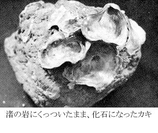 私が本格的な潜函調査にとりかかってから5番日の調査地は、尼崎市の左門殿(さもんど)川にかかる辰己橋の潜函であった。ここでは、次にあげるような興味ある新事実がいくつも発見された。ここにその証拠写真をあげたが、深度23.4メートルで地層は有機質の黒褐色のピート質粘土層から、貝殻を多くふくむ黒褐色のガサガサした砂利混じりの砂質シルト層にかわる。この40センチ上位の地層から握りこぶし大のまるく角のとれた花こう岩の小石に、マガキが付着したままで化石になっているものを採集した。マガキは潮間帯に生息する貝であるし、まるい石は海岸の汀線にある石の特徴をそなえている。この石付き化石とともに、ウネナシトマヤガイ、カワアイ、ユウシオガイ、ヌマコダキガイなどの貝化石を採集した。マガキの14C年代は8,820年±130年前と測定された。