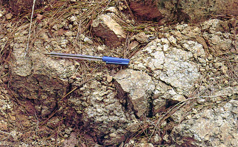 須磨アルプスをはじめ六甲山地の大部分をつくっているのが六甲花こう岩である。須磨アルプスを越えた所で、黒雲母、斜長石、かリ長石、石英のよく見分けられる六甲花こう岩が出ている。