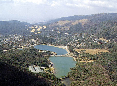 六甲山頂からみた芦屋市の奥池平坦面 |