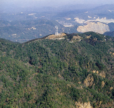 東六甲の尾根にひときわ目立つNTT船坂無線中継所。 |