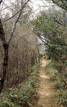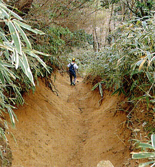 花こう岩の風化が進み、道は深くえぐられている。 |