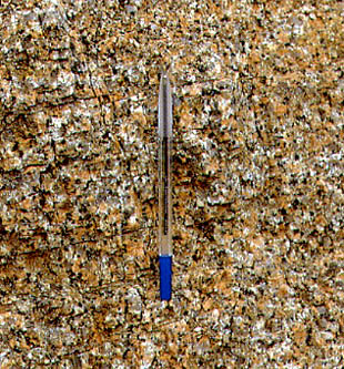 東六甲は濃い桃色のカリ長石の目立つ六甲花こう岩でできている。 |