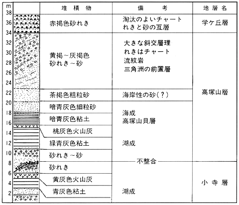 第四は、この粘土層は、三角州堆積物の最下部をしめる底置層にあたるものであり、その上にもともと傾いて堆積した前置層にあたる砂れき層があるということも新たな発見でした。