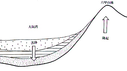 100万年間に六甲山地は数100m隆起し、大阪湾は数100m沈降した。古い大阪層群で山とともにもちあげられた地層もある
