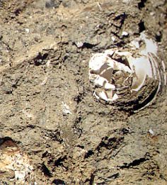 ウラカガミガイは、左右の殻がそろって産出し、現地性の化石である