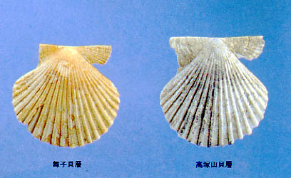 東京大学の速水格さんは、この両層をふくめてこの仲間の進化についての研究を発表しています。それによると、両層のムカシチヒロの放射肋(ほうしゃろく)の数を比べると、舞子貝層のものは21〜23本のものが多いのに対して高塚山貝層のものは18〜20で少なく、現在も大阪湾に生きているアワジチヒロと舞子貝層のものとの中間的な形態であると述べています。(裏表紙参照)