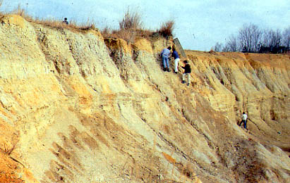 この台地の東はしにあたる岩岡町印路(いんじ)に赤坂粘土層と名づけられた海成の地層があることが以前から知られていました。また、台地の西はしには、日岡海成層という地層もあります。