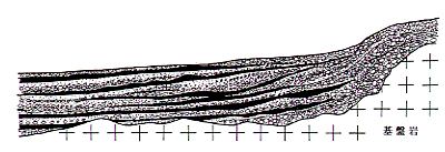ということは、この明石累層の時代にはレキをはきだしてくる山地が存在したことになります。六甲山地はその当時まだそれほどの高まりをもっていなかったと考えられています。また、レキ層のレキの種類は流紋岩(りゅうもんがん)が多く、ほかはチャートですから、花こう岩からできている六甲山地から運ばれてきたものとは考えられません。