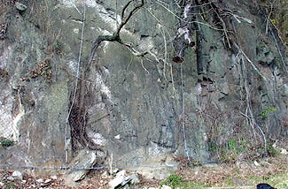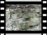 (中央区葺合町) 表面にはコケが生えて緑色に見えます。布引花こう閃緑岩の節理です。