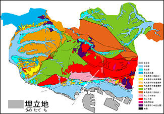神戸市では、明治時代から海を土砂で埋め立ててきました。それまで海だったところに新しい土地ができます。とくに、昭和40年ごろからおこなわれた大規模な埋め立ては、「山、海に行く」といわれました。須磨区や垂水区、西区の山地や丘をけずりとって、平らにして住宅地をつくり、その土砂で海を埋め立ててつくられたのが、ポートアイランドや六甲アイランドなどの人工島です。人間がつくった地層ともいえます。