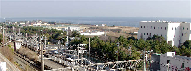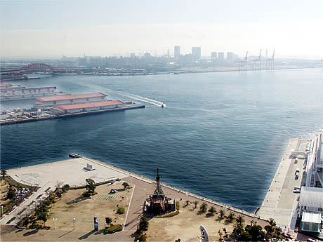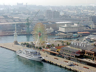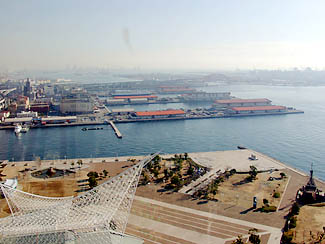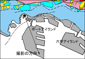 神戸港やその先の海上にうかぶ人工島は、埋立地です。写真のポートアイランドもその一つですし、手前下に移っているメリケンパークもそうです。 |