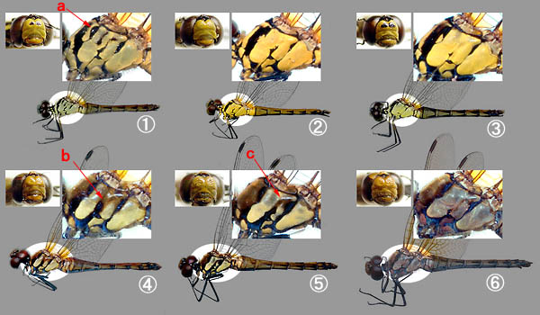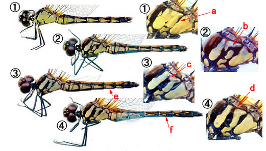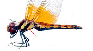 このアカトンボの出現は早く、7月には産卵していることがあります。また幼虫で冬を越します。林のへりにあり、水草がたくさん生えた池によく現れます。腹部は赤くなるものと赤くならないで黄色のままのものがあります。 |
