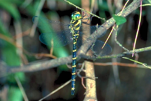形態:腹長47〜59mm.黒地に黄色のしま模様のあるヤンマです.体に比して複眼が大きく,腹部第3節が少しくびれています.しかしコシボソヤンマよりは明らかに細身で小型,地色も純黒(コシボソヤンマはこげ茶色)なので容易に区別できます.