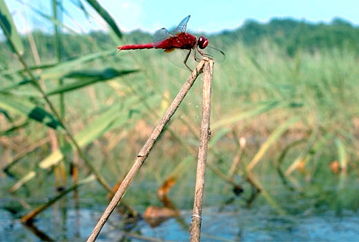 | 写真2-84.ショウジョウトンボ.西区櫨谷町.1995.7.28.オスの静止.(大嶋範行氏撮影). |