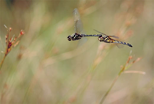 生態:小野市での観察によると,6月下旬に終齢幼虫がたくさんとれ,それらは7月中旬には羽化し始めて,8月になると近くの松林の中に止まっているすがたが観察できます.9月下旬ころ池のほとりに出現し,遠浅のため池の,岸辺に生えている草の間で連結打空産卵をおこなうようになります.産卵動作ははナツアカネによくにています.11月に入るまでそのすがたをみることができます.