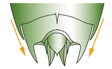 沈水植物の中や根際にもぐり込んで生活.背棘の数は,まったくないものから第4〜8節にあるものまで,変異がある100).通常は第4〜7節.3aグループのものとは大きさと側棘の出方を比較する.