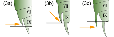 (3b)先端が第9節末端にちょうどとどく程度のもの