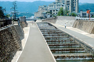 住吉川:市街地を流れる住吉川です。街並みにマッチしたエレガンスなながめです。両側に歩道があって、市民が水と親しみやすくなっています。