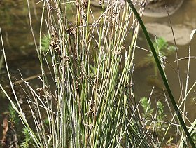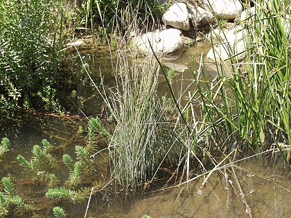 よごれた水でも育ち、水の中から生えている細長い葉を持っています。