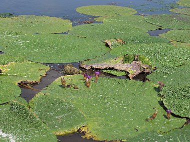 直径1m以上のおおきな葉を持つ、最大の水性植物です。