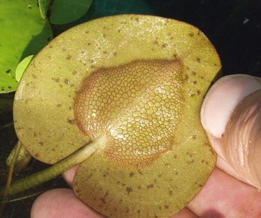 葉のうらがわには、空気をためて葉をうかす、うきぶくろがあります。