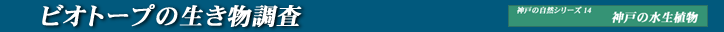 | 場所は,神戸市立糀台小学校の池のビオトープです.2003年8月15日に,生物群ごとにいくつかの班に分け,2時間ほどの採集活動を行って,理科室で写真撮影,同定を行い,後日結果をWebページ形式でまとめました.採集は専門的になりすぎないように,子どもたちができる程度の方法で行っています. |
