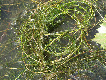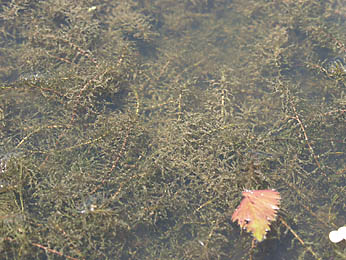 池の中央部にびっしりと生えています.水面より下に生える植物ですが,成長して混雑してくると,ひしめきあって体の一部が水面に出てしまうことがあります.
